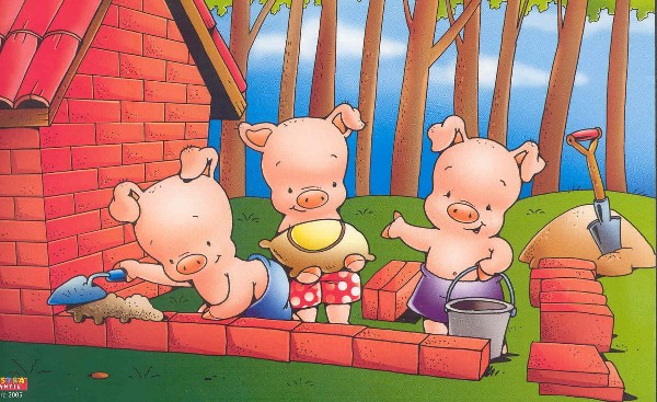 En el corazón del bosque vivían tres cerditos que eran hermanos. El lobo siempre andaba